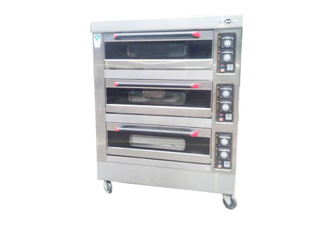 1、三层六盘电烤箱 通过400度温控设计,升温更快,大大提供烘焙速度。