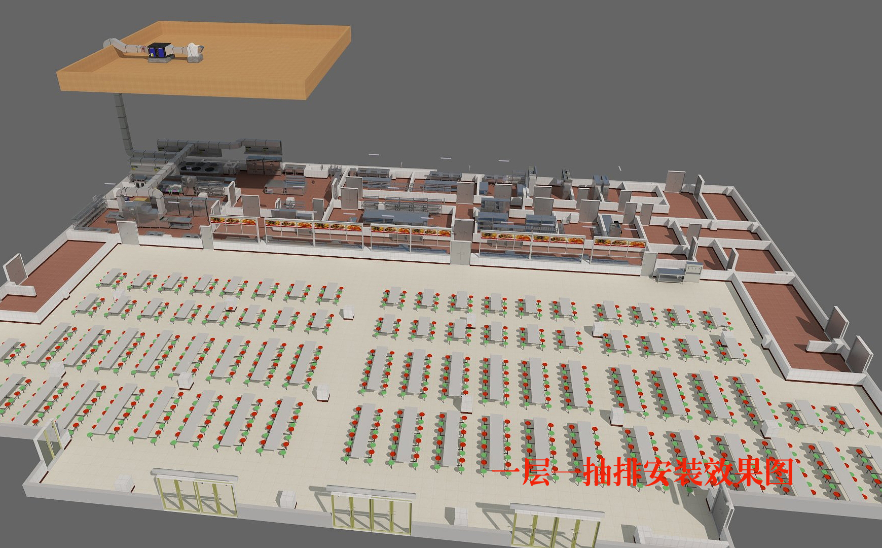 气流组织就是利用各工作间及周边空间的正负压设计,控制气流按照科学合理的流程流动。首先确定各空间的正负压、基本原则就是高清净、干燥防潮的环境需要保持正状态,使室内空气向外流动,使油烟、蒸汽不能进入室内污染环境和食品。产生油烟、蒸汽、异味、潮湿、余热的环境要保持负压状态,使室外气流向内流动,实施气流流程控制。