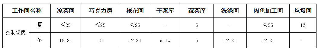 (2)工作专间温度控制