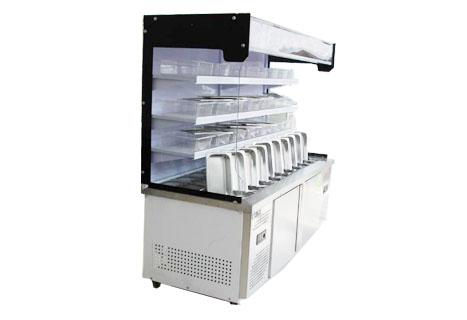 1、立式点菜柜采用静音压缩机,噪音低,使用寿命长,制冷效果快,有效提高业绩。