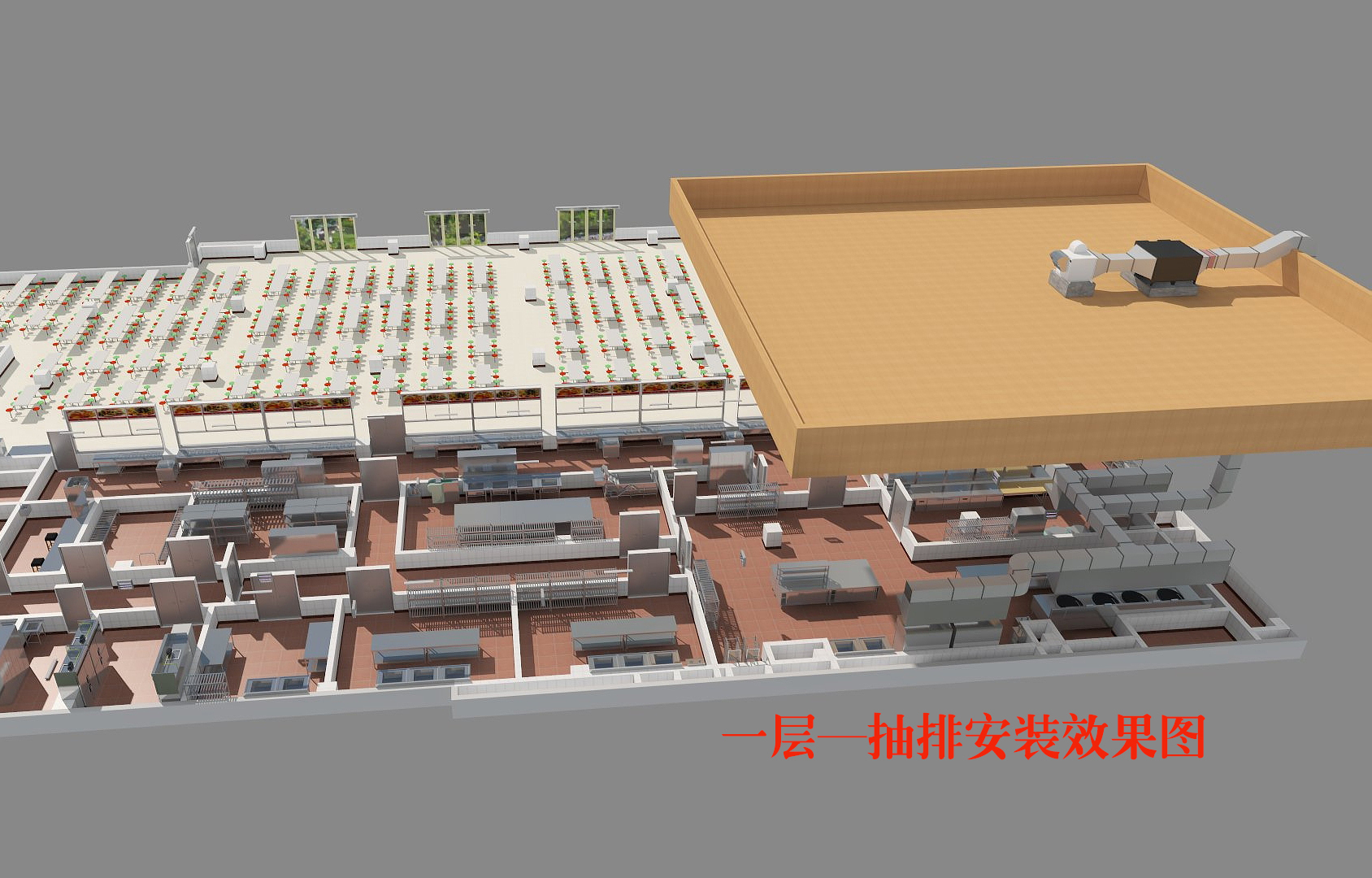(3)设备放置符合一般使用习惯,便于操作。应集中放置排烟和蒸汽发生设备,以方便排烟系统的安装。