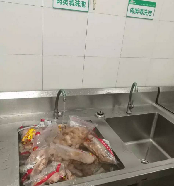 解冻菜品无需使用流水冲,如果是在冬天解冻食品,可以提前取出菜品,温水解冻,无需水龙头冲。如须冲洗,可以将水压调小,不需要用大水冲洗。