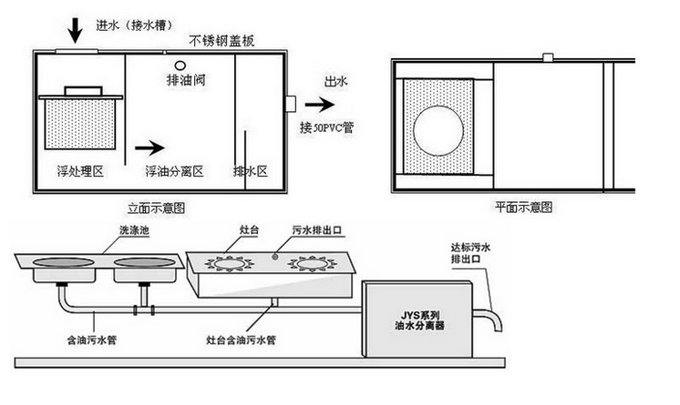 A、隔油池:利用废水中悬浮物与水的比例不同,达到分离的目的。隔油处理后的废水溢出排水池进行后续处理,去除乳化油等污染物。