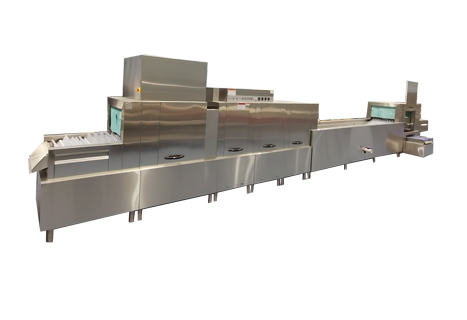功能特点:餐具由传送装置上棘爪步进移动前进,由上.下洗涤臂,喷淋臂,同时冲洗更干净,更彻底.完美的洗涤效果.简易的操作.精巧.但洗涤量大.节省能源的特色,程序化控制,全自动操控,傻瓜式设计,操作简易,连续洗涤能力更高,双层臂式结构,保温更好,节约能源