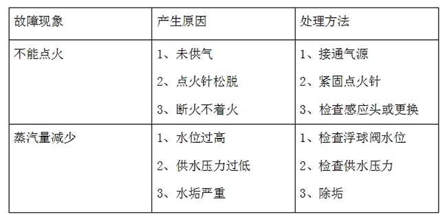 4、在水质较硬的地区,燃气发生器要除垢,每使用一个月左右要用除垢剂除垢,以防止干烧,最好用5%的柠檬酸加95%的水溶液搅拌均匀,放入蒸汽发生器内,点火煮沸15分钟,浸泡1小时,再煮10分钟,打开排污阀放尽积水及废渣,并反复用清水清洗干净。