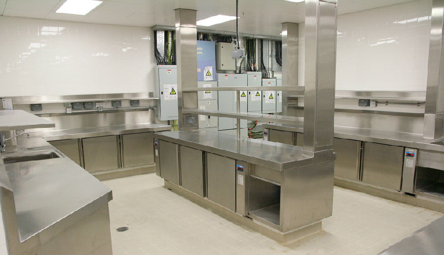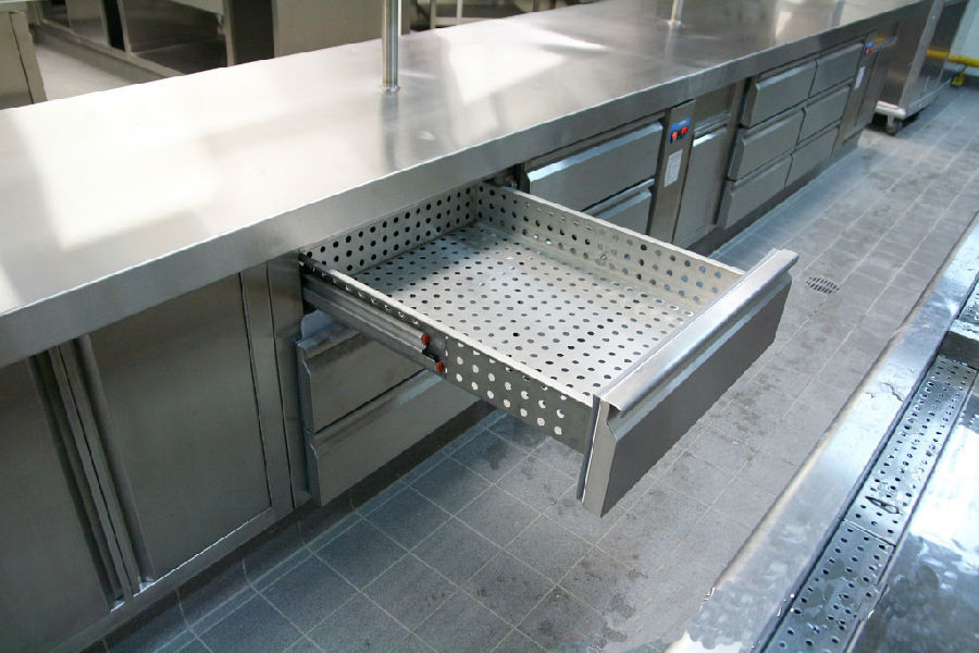 依然是一流的现场无缝焊接工艺,台面非常平整,对土建(地台施工),现场焊接工艺,调理台的制造工艺要求非常高。工作台的背板用大弧度L型设计,避免藏污纳垢,容易清洗。