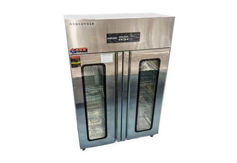 通过电热管加热产生热能,利用风机将热空气在柜内循环,使温度不小于120℃,消毒工作时间大于 15 分钟,以实现对餐饮具消毒的目的。