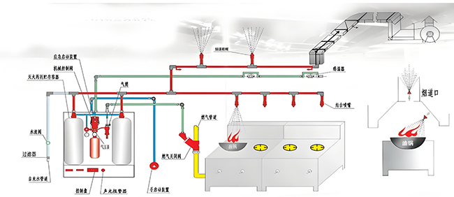 3、日皮视频APP苹果下载专用灭火装置:日皮视频APP苹果下载专用灭火装置是由灭火剂储瓶与关断燃料阀机构、机械驱动装置、雾化与喷头管网、感温易熔金属探测器与控制管路、手动应急启动等组成。日皮视频APP苹果下载安装该系统之后,可24小时不间断的对日皮视频APP苹果下载的灶台、集油烟罩、排烟管道进行全方位的消防保护。
