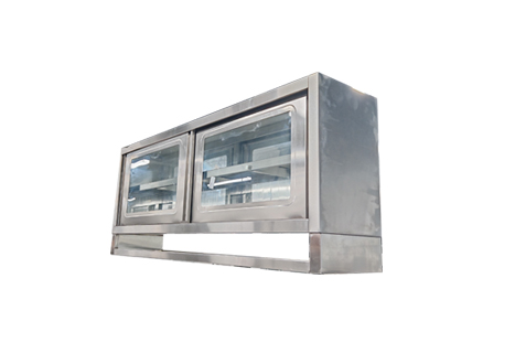 不锈钢二层玻璃门吊柜面板采用201# 1.2mm不锈钢,层板采用201# 1.0mm不锈钢制作,经久耐用,空间大,可存储大量物品,适用于大型餐厅、酒店、食堂日皮视频APP苹果下载。